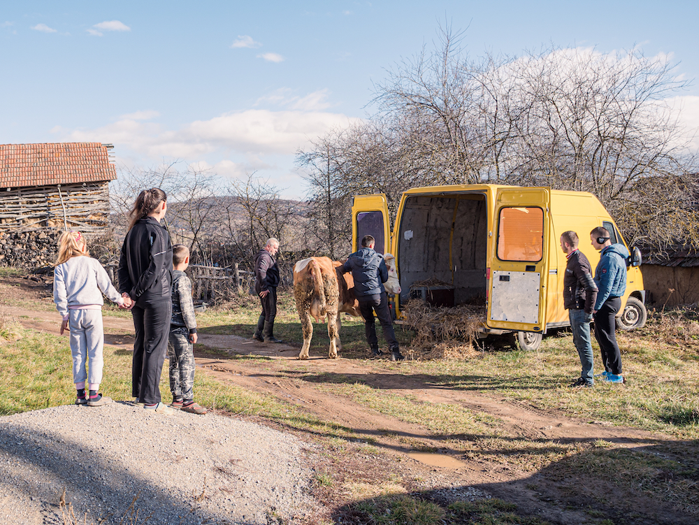 Les distributions s’enchaînent. Dans cette région difficile, nous ne pouvons pas faire de plus beaux cadeaux que quelques têtes de bétail. Nous livrons plusieurs petits troupeaux de moutons et quelques vaches. Celles-ci sont particulièrement magnifiques : de grande taille, solidement plantées sur des pattes musclées et surplombées par une belle paire de cornes, elles n’ont rien à voir avec les laitières maigres qu’on voit souvent dans ces campagnes. Elles ont été choisies par l’équipe de la ferme de Novo Brdo en raison de leur capacité à vivre sobrement, sur un terrain difficile, et à fournir malgré ça une belle quantité d’un lait épais et généreux. Elles sont franchement impressionnantes, et il faut toute la force et l’expertise d’un employé de la ferme pour parvenir à les calmer à la sortie de la camionnette et à leur faire intégrer leur nouvelle étable, sous l’œil à la fois admiratif et effrayé des plus jeunes enfants.