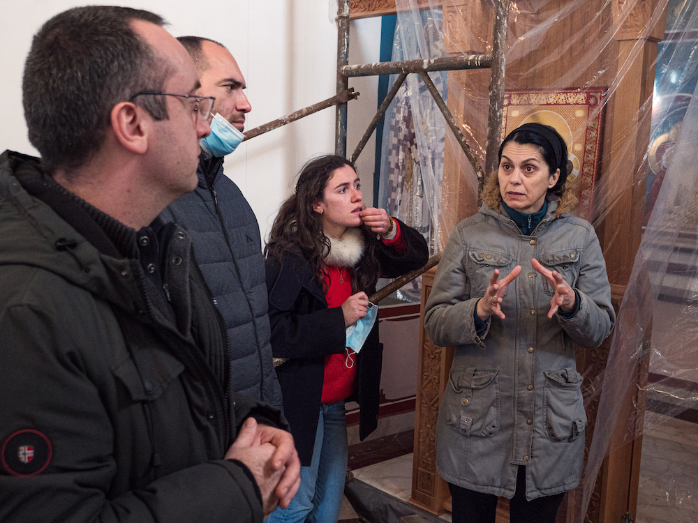 Dans le soir qui tombe déjà, nous faisons une halte pour déposer le Père Stevo chez lui. Nous entrons dans la petite église de l’Assomption de la Très Sainte Mère de Dieu et découvrons un chantier incroyable : une artiste est en train de repeindre des fresques magnifiques sur les murs de cette jolie église, qui auparavant étaient intégralement blancs, apparemment depuis sa reconstruction. L’artiste, Ruzica Todorovic, est là, c’est une peintre reconnue partout en Serbie. D’une voix douce, elle nous raconte sa démarche, sa carrière. En cette fin de journée, épuisés par les distributions et par toute la misère que nous avons vue depuis le petit matin, nous vivons une parenthèse enchantée dans cet écrin sublime, avec une artiste au talent aussi grand que la foi, qui n’hésite pas à nous dire le plus naturellement du monde : « J’ai appris à peindre des fresques avec les moines. Et avec Dieu ». Et qui s’enthousiasme soudain quand elle raconte ce que représente pour elle le fait de peindre ici, au cœur du Kosovo-Métochie martyr. « Peut-être que ces fresques seront détruites un jour, comme l’ont été celles qui se trouvaient avant sur ces murs. Peut-être qu’elles ne le seront pas et qu’elles seront encore visibles dans plusieurs siècles, comme celles des saints monastères de Gracanica ou Decani. Je ne le sais pas et peu importe. Ce qui compte, c’est de peindre pour Dieu, qui Lui n’oublie jamais. »