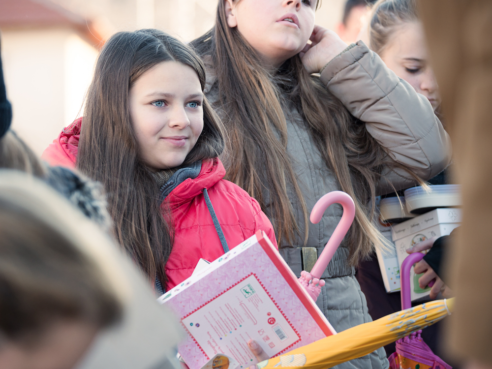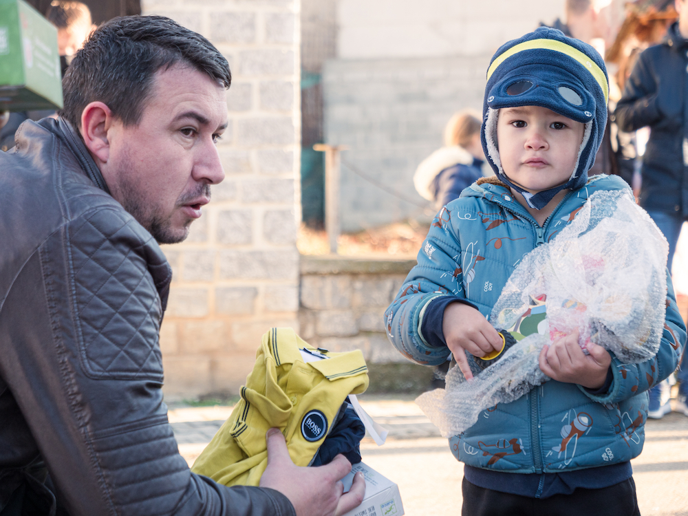 Le matin du 1er janvier est superbe et fait honneur au village de Velika Hoca, surnommé « la Perle de la Métochie ». Nous faisons une dernière distribution sur la place du village, pleine d’enfants de tous âges, puis rechargeons les cartons qui restent dans un fourgon du bureau humanitaire de Gracanica.