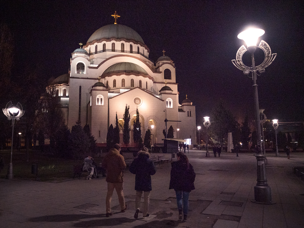 Deux volontaires français avec Arnaud Gouillon devant la basilique Saint-Sava à Belgrade, sur le chemin du retour. Nous espérons que ce compte-rendu vous aura permis de ressentir un peu de ce que nous avons ressenti. Nous vous remercions encore pour votre fidélité et votre soutien qui ne se sont pas démentis cette année ; si nous avons pu partir, c’est grâce à vous, et c’est pour vous. Cette amitié que nous vivons avec nos amis serbes nous dépasse complètement : elle est un petit bout de cette amitié franco-serbe à laquelle nous continuons, tous ensemble, de croire. Et ce convoi, comme les 16 qui l’ont précédés et comme tant d’autres choses, prouve qu’elle existe encore et qu’elle a un bel avenir malgré les difficultés.