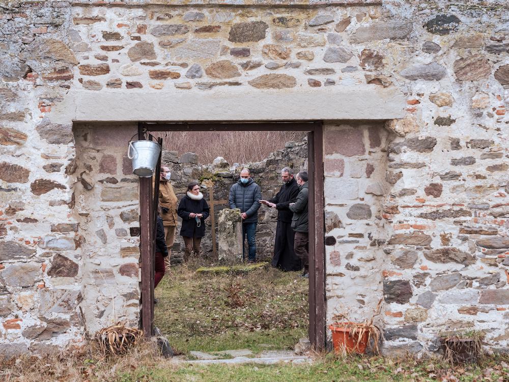 Dans ce qui était autrefois le chœur de l’église, à l’endroit de l’autel, le Père Serdjan nous raconte l’histoire de ce monastère, ravagé par les Ottomans peu après la bataille de Kosovo Polje, en 1389. Il nous raconte aussi les difficultés que rencontre l’Église serbe à chaque fois qu’elle essaie de faire des démarches pour pouvoir faire revenir des moines pour rénover ce monastère. « Nous voulons revenir ici avant que des Albanais décident soit de raser ce qui reste — comme ils l’ont fait sur le site de la forteresse de Kamenica juste après que des archéologues y ont retrouvé des preuves indéniables de son passé serbe —, soit de prétendre que ce monastère a toujours été albanais. » Malgré les pressions diverses, malgré les obstacles dressés sur ce chemin, le projet avance… Peut-être aurons-nous bientôt l’occasion d’aider à reconstruire le monastère de Rdjavac ?