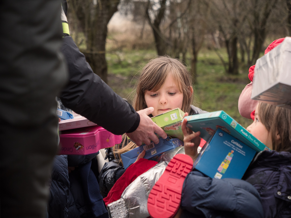 Un détail nous surprend : dès notre arrivée, les élèves, qui nous attendaient dans l’école alors qu’ils sont en vacances, sortent à notre rencontre et insistent pour nous aider à monter les cartons de jouets et vêtements à l’étage, où aura lieu la distribution. C’est la première fois que nous voyons ça et ça nous amuse et nous réjouit. Si bien que quand une institutrice nous annonce être « très fière de ces enfants, qui malgré les difficultés sont très gentils et très bien éduqués », nous n’avons aucun mal à la croire.