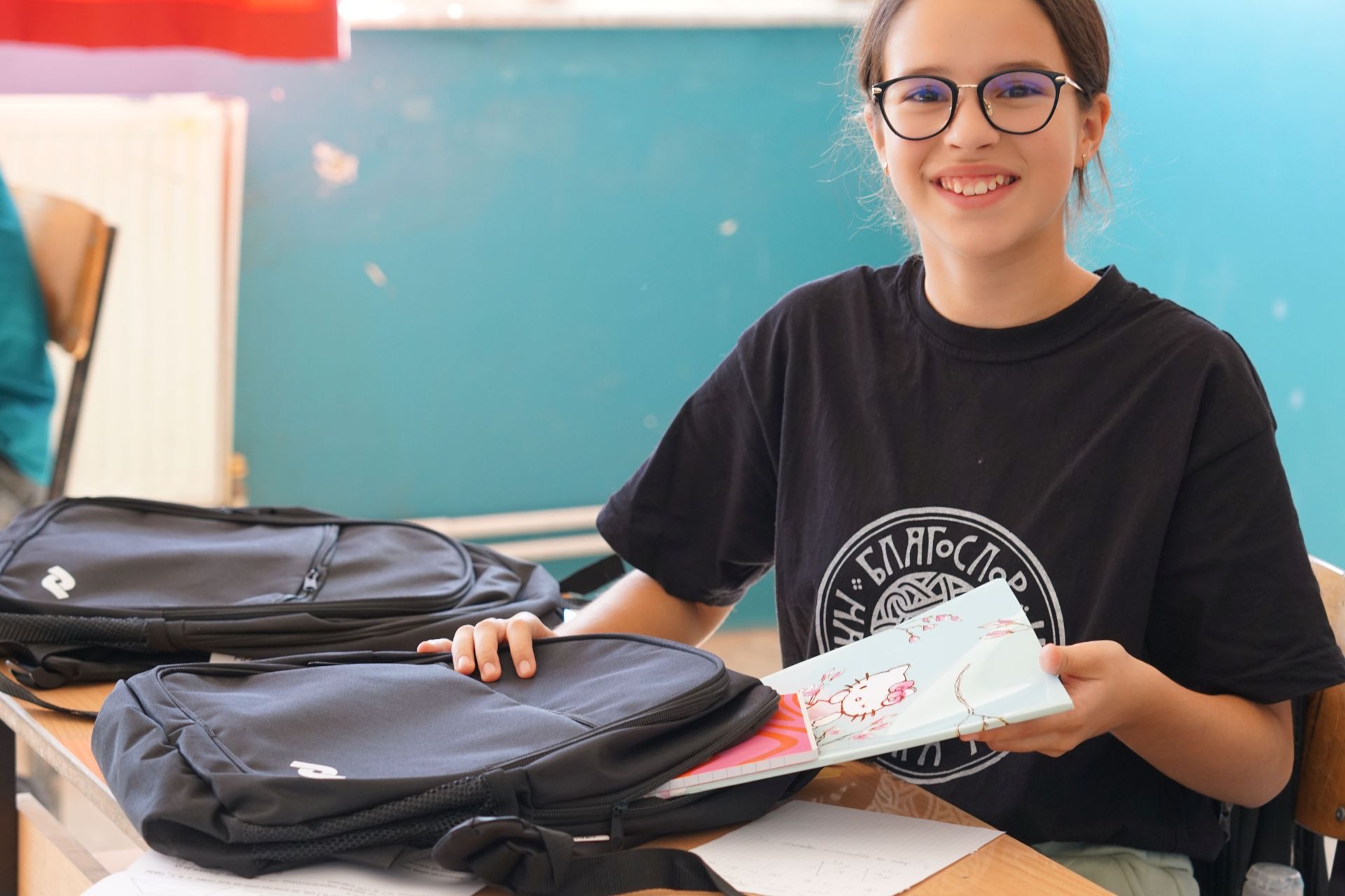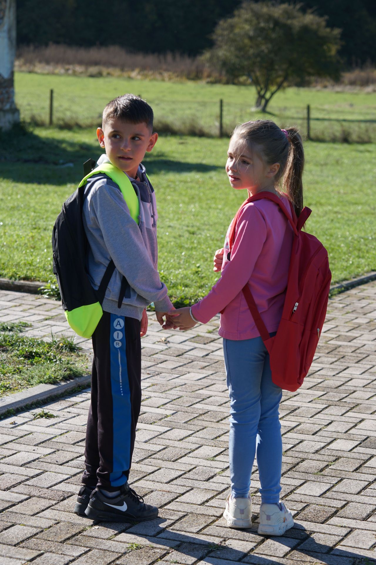 Parmi les bénéficiaires, Tea, élève et originaire de l’enclave de Novo Brdo où se déroule la distribution, est venue avec son frère Marko. Ils sont surpris de recevoir, en plus du cartable, des cahiers, une trousse, crayons, un tube de colle… « L’année dernière, ma cousine m’avait fait cadeau de son cartable mais depuis il s’est déchiré », confie Tea en regardant amoureusement son nouveau sac. « Maman et papa vont être soulagés » assure-t-elle le regard pétillant derrière ses petites lunettes rondes.