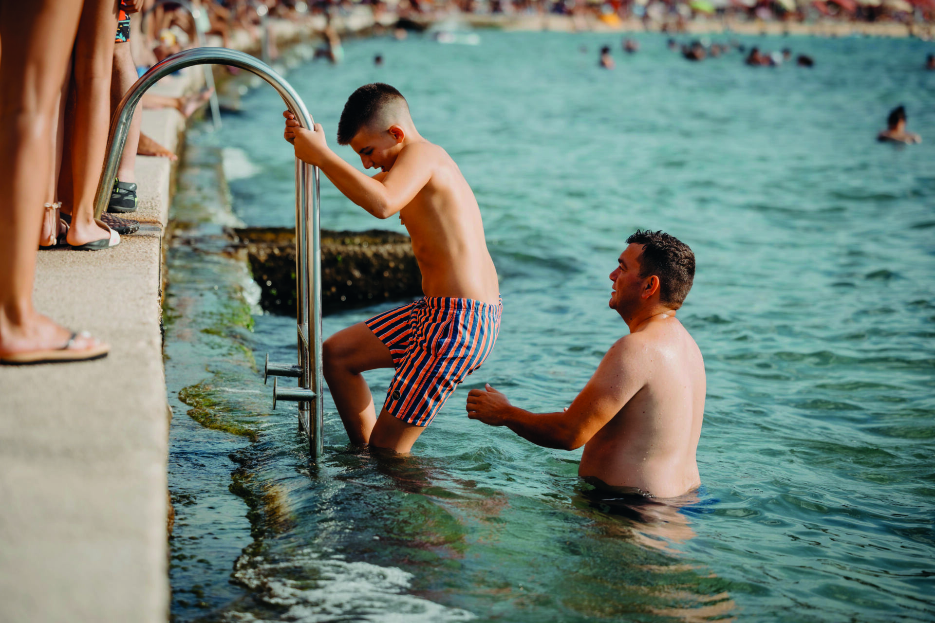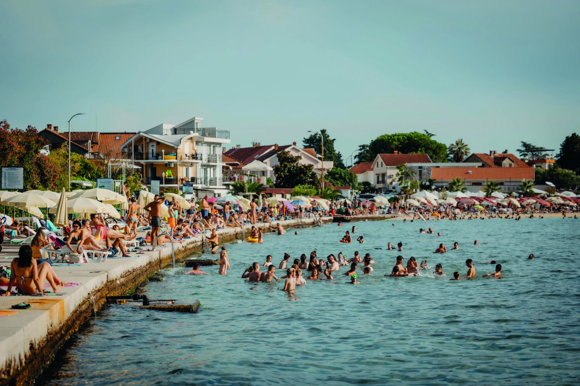 On demande aux passagers encore quelques minutes d’attention en descendant du bus afin de les répartir dans les chambres, de leur donner les premières consignes et de leur remettre un sac avec un t-shirt, une casquette, de la crème solaire, bref, tout ce qu’il faut pour profiter du soleil monténégrin. Après plus de dix ans, les accompagnateurs le savent, les enfants n’ont qu’une seule envie : enfiler leurs maillots de bain et mettre les pieds dans la mer, bien souvent pour la première fois. Au bord de l’eau, on peut classer les enfants en différentes catégories de baigneurs. Il y a les plus intrépides et ceux qui savent déjà nager qui se jettent à l’eau dans de grandes éclaboussures. Les plus jeunes qui n’osent pas entrer et qui goûtent l’eau du bout des orteils pour voir si elle est bonne. Les rêveurs qui prennent le temps de contempler les reflets irisés de l’Adriatique avant de succomber à la tentation et de courir dans l'eau.
