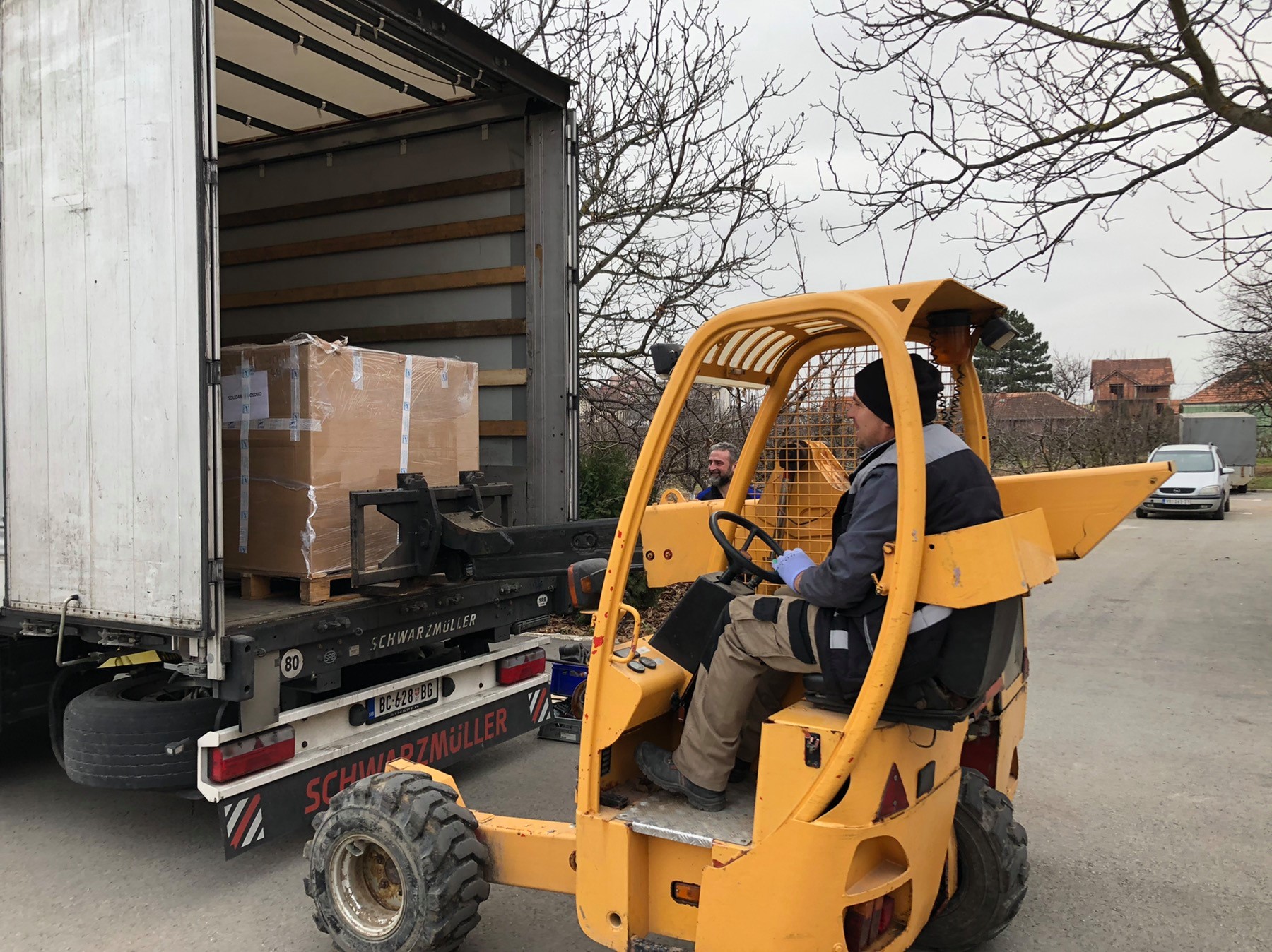 Le 15 décembre, les bénévoles de notre bureau humanitaire de Gracanica ont déchargé les 15 palettes de matériel que nous avions envoyées de Grenoble une semaine plus tôt.