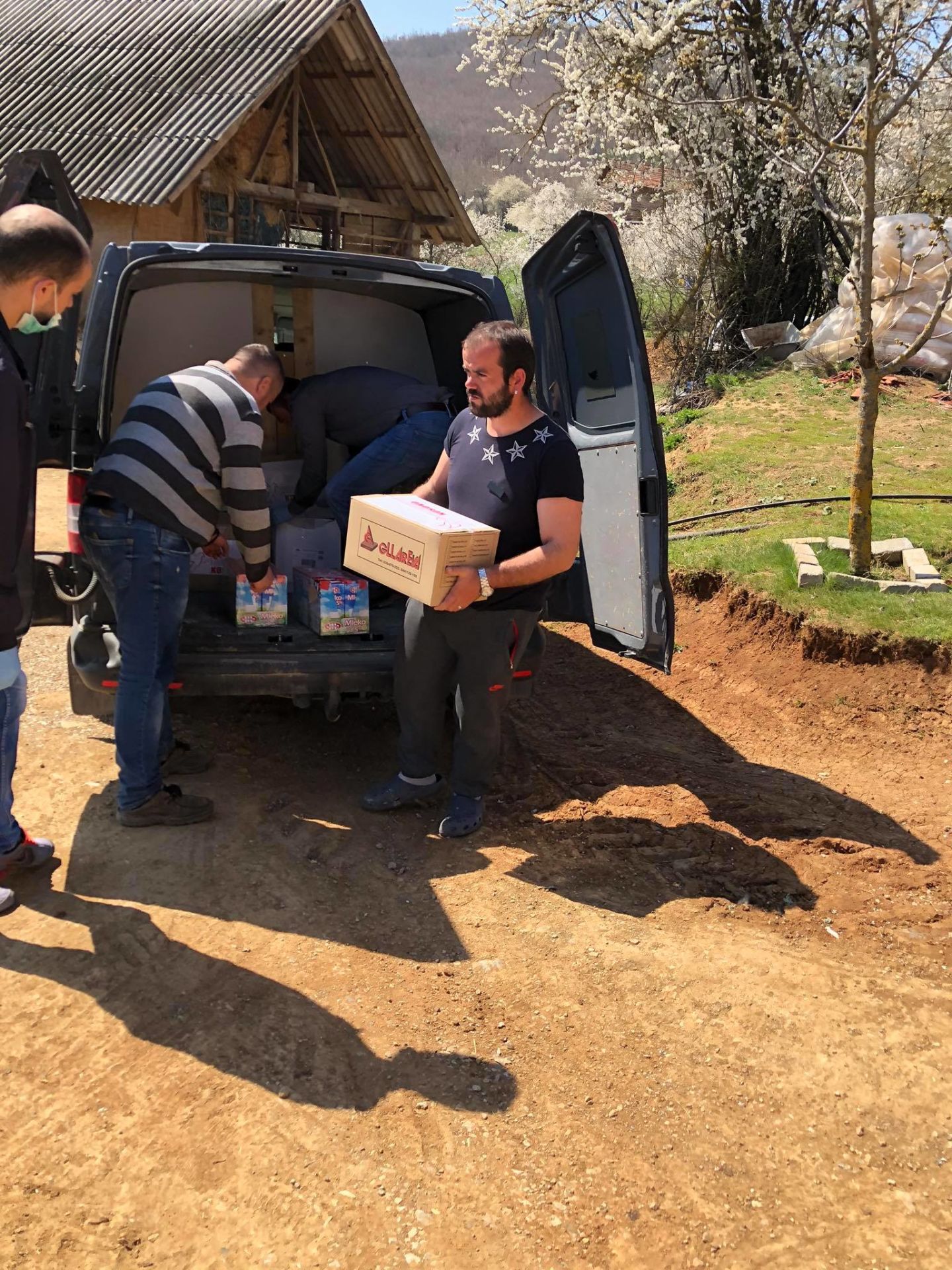 Lundi 13 avril, le lendemain de la fête des Rameaux pour les orthodoxes, les volontaires du bureau ont chargé la camionnette de cartons de nourriture, de produits d'hygiène et de médicaments selon les indications envoyées par le Père Stefan Mitric, curé de la paroisse de Novo Brdo.
