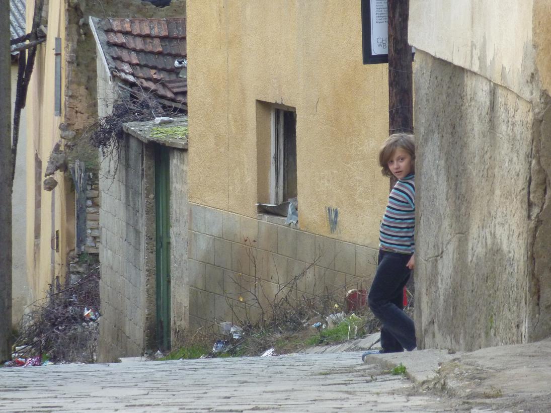Nous nous rendons ensuite au village de Velika Hoca qui est à environ 10 minutes d’Orahovac. Ici pourtant la situation semble plus calme. On ne se sent pas dans un ghetto comme à Orahovac où les barbelées sont toujours en place. Velika Hoca est un magnifique village viticole comportant 13 églises, des maisons traditionnelles et une place où des dizaines d’enfants jouent quotidiennement. Un village sans doute bien plus tranquille que certains quartiers de France si l’on fait abstraction du fait que nous sommes ici comme dans une prison à ciel ouvert de laquelle on ne peut sortir sans escorte militaire. Le matériel est rapidement déposé grâce à l’aide des parents et des enfants. Certaines jeunes filles de notre équipe en profitent même pour sympathiser avec les plus petits qui, il est vrai, nous attendrissent fortement.