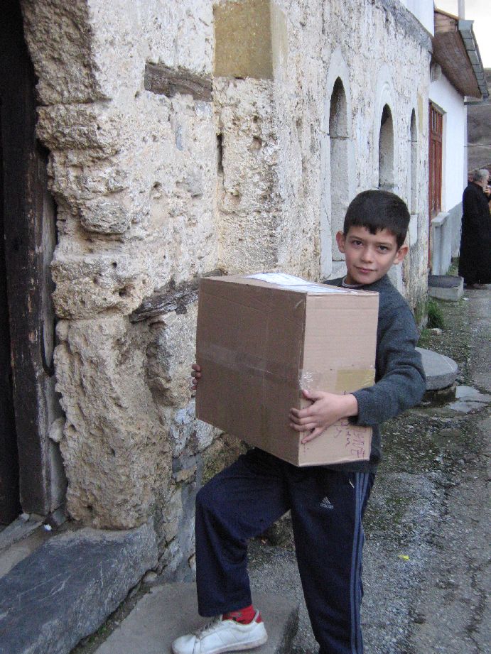 Après le café et la « chlivo » d'accueil, nous procédons au début de la distribution. Les villageois se montrent heureux des présents que nous sortons des camions au fur et à mesure. Mais déjà, il est l'heure de se mettre en route pour une enclave voisine, Crkolez, où 10 de nos fameux ordinateurs seront déposés à l'école. Nous connaissons bien Crkolez puisque nous nous y rendons chaque année depuis quatre ans. C’est un plaisir de reconnaître les visages des enfants et d’être reconnus à notre tour.