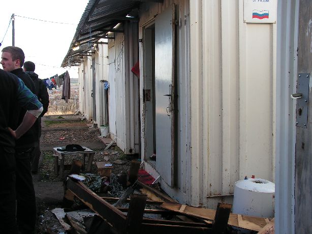 Reçus par les autorités locales, nous rendons visite à des habitants vivant depuis dix années dans des containers. Le climat psychologique de ce bidonville est dur, nous y laissons jouets et vêtements, ainsi que des chocolats. Après avoir donné quelques jeux à une maison pour personnes handicapées, nous confions à une association municipale une cargaison de jouets, vêtements et d’ordinateurs. À charge pour elle de redistribuer ces dons.
