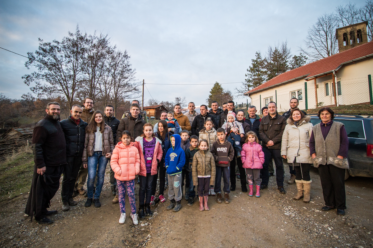 Une partie des habitants de l'enclave de Crkolez sur la "place centrale" du villages (en fait un simple croisement de deux chemins) à la fin d'une distribution lors de notre convoi de Noël 2017.Ces vols sont hélas fréquents dans cette enclave et deux autres proches, celles de Banja et de Suvo Grlo. À Crkolez, en 2018, huit vaches avaient été volées en une seule nuit. À Banja, la même année, les vols ont été si nombreux que les paysans se sont relayés tout l'hiver pour dormir dans les granges...