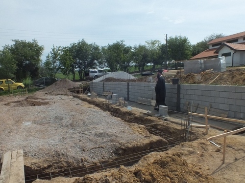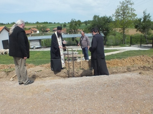 Au début des travaux, le chantier a été béni par le Père Ilarion, archimandrite du diocèse du Kosovo-Métochie et ami de longue date de Solidarité Kosovo. Au cours d'une cérémonie religieuse en présence d'ouvriers du chantier et du complexe agricole, au milieu des parpaings et des grillages, il a béni les fondations et parcouru le chantier encensoir à la main.