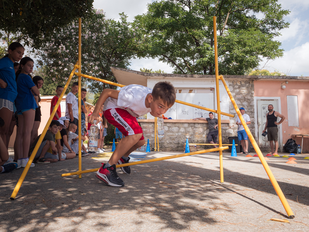 Après le déjeuner et une petite sieste, quand la chaleur écrasante du milieu de journée commence à s’éloigner, portée par un courant d’air venant des montagnes, les enfants s’affrontent en équipes dans des épreuves sportives inventées par Dejan, entraîneur du club d’athlétisme de Priluzje dont vous pourrez (re)lire le portrait en cliquant sur ce lien. Ces équipes sont composées au début du séjour de façon à mélanger les enfants, afin que chacun puisse créer des amitiés avec des jeunes d’autres enclaves que la sienne.